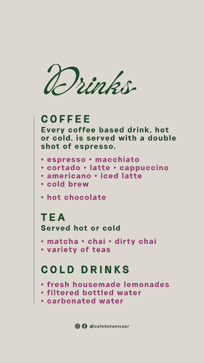 Café Botánico offers a thoughtfully curated menu that blends simple café favorites with comforting, handcrafted drinks. The selections are designed to complement a relaxed atmosphere, where visitors can enjoy casual bites, light meals, and a moment of calm in the heart of San Juan.